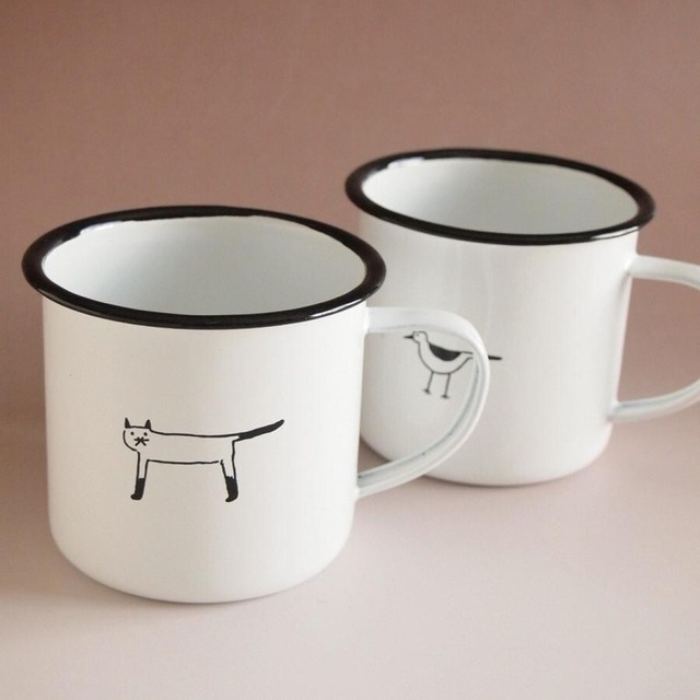 訳あり特価!ガレージセール! ホーロー マグカップ 2個セット ねこ・とり 33