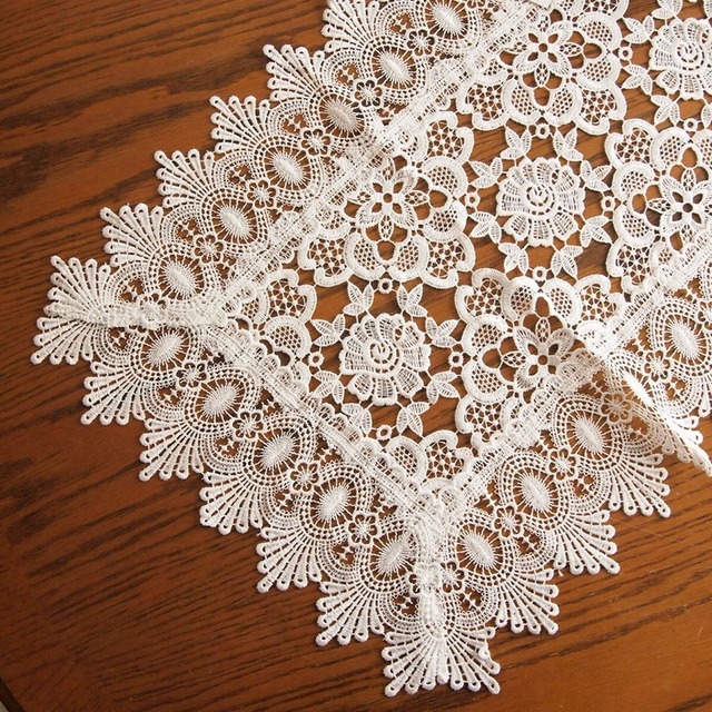 アンティークレース風 ギュピールレース テーブルセンター ピュールホワイト 43x74cm