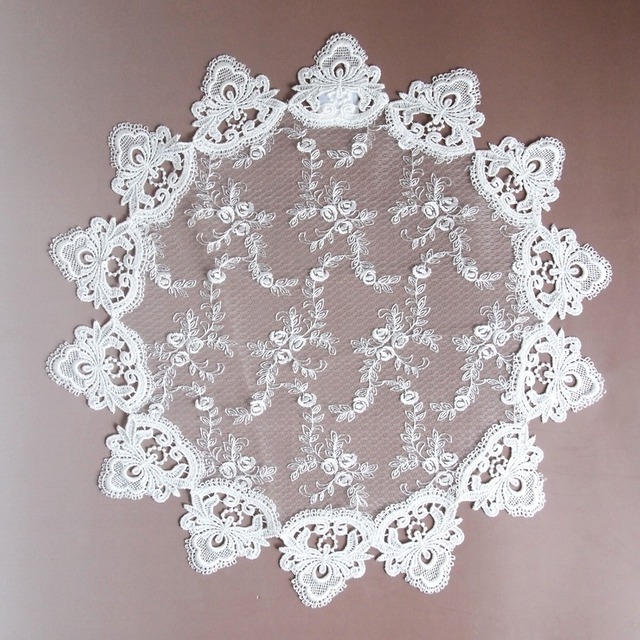 ◆ナチュラルレースの魔法♪◆ ゴージャスな雰囲気が素敵なアンティーク調刺繍レース! ちょっとしたスペースにかけるだけで、お部屋がやさしい雰囲気になります。 優しく手洗いすれば、美しさ長持ち♪ Φ60cm ポリエステル100% 色:ホワイト