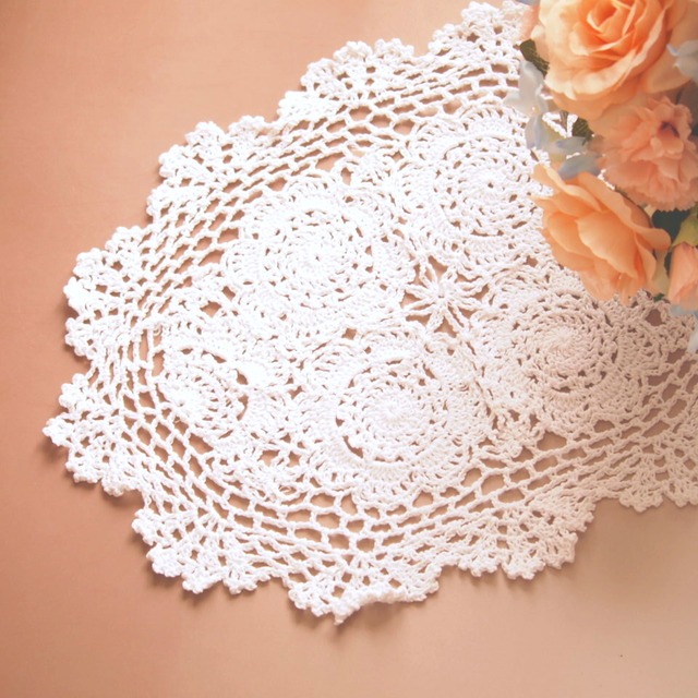 ハンドメイド レース テーブルセンター 手編み コットン ケイティ 25×36 ホワイト アンティーク調