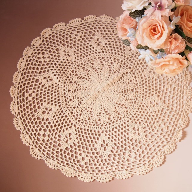 ハンドメイド レース ドイリー 手編み コットン マリアンヌ ベージュ 49 アンティーク調