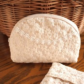 フラワー刺繡 フェアリーベール 半円ポーチ 小花柄刺繡 アイボリー