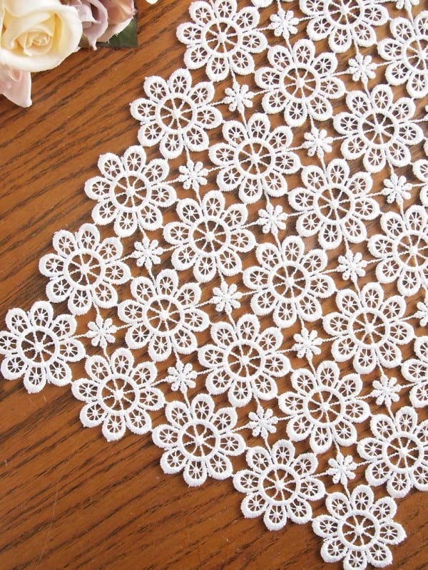アンティークレース風 ギュピールレース テーブルセンター マリーゴールド アイボリー 25×34cm