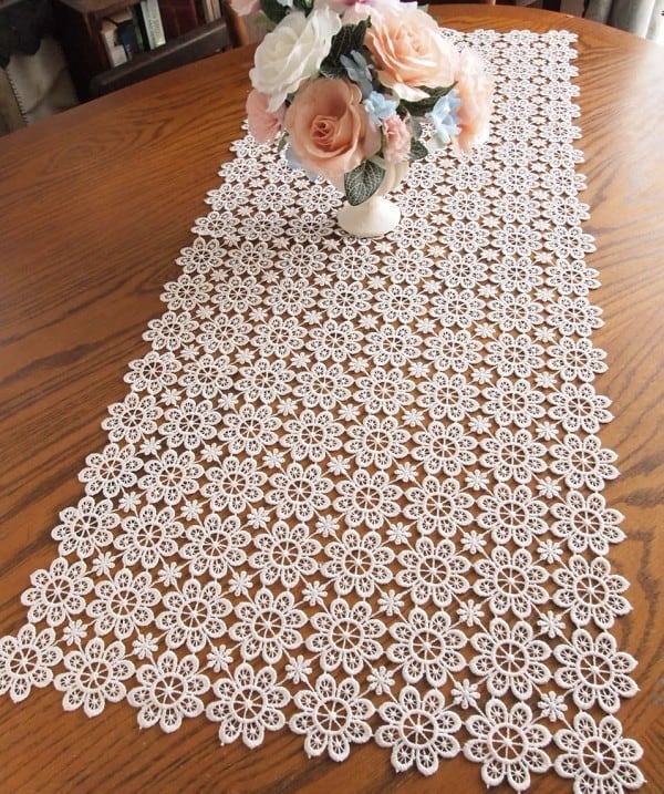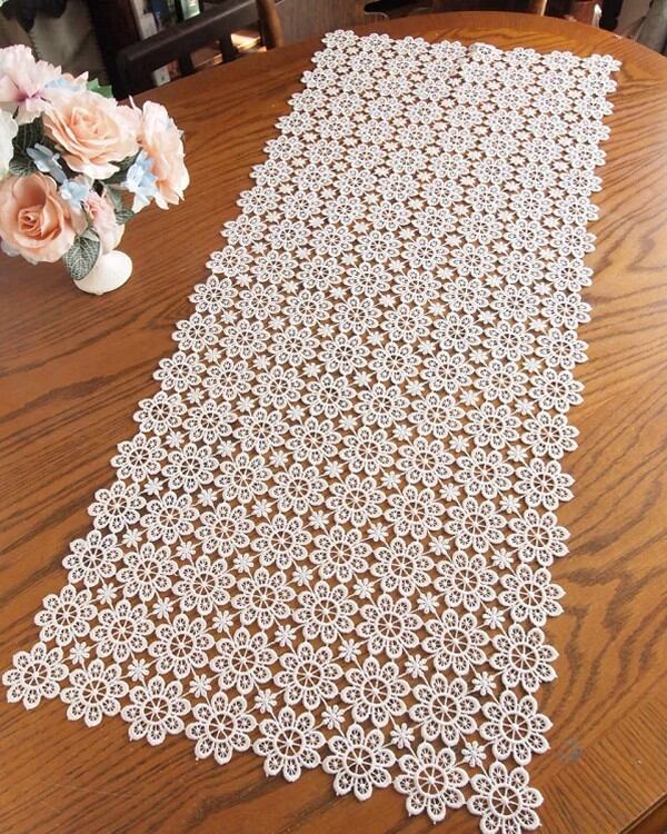 アンティークレース風 ギュピールレース テーブルセンター マリーゴールド ベージュ 40×90cm