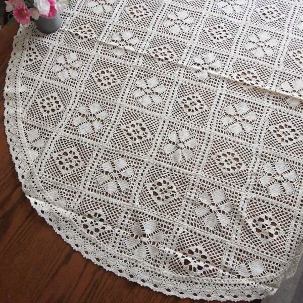 アンティークレース風 テーブルセンター ボーダーガーデン ベージュ φ112cm