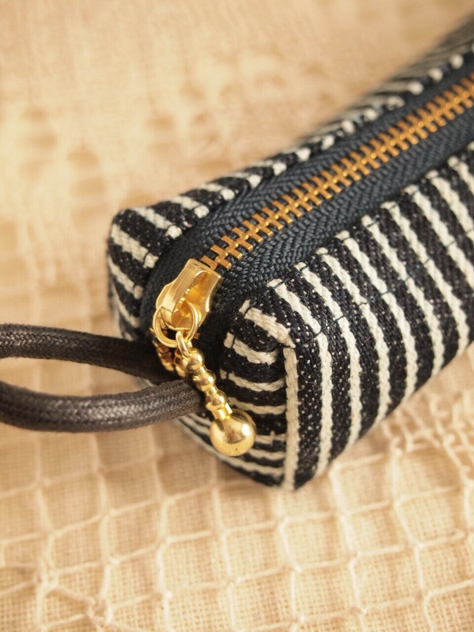 セール!30%OFF! ハンドメイド ポーチ 雑貨屋カンフィ クラフトkeke ヒッコリー ポーチ ブラックハンドル