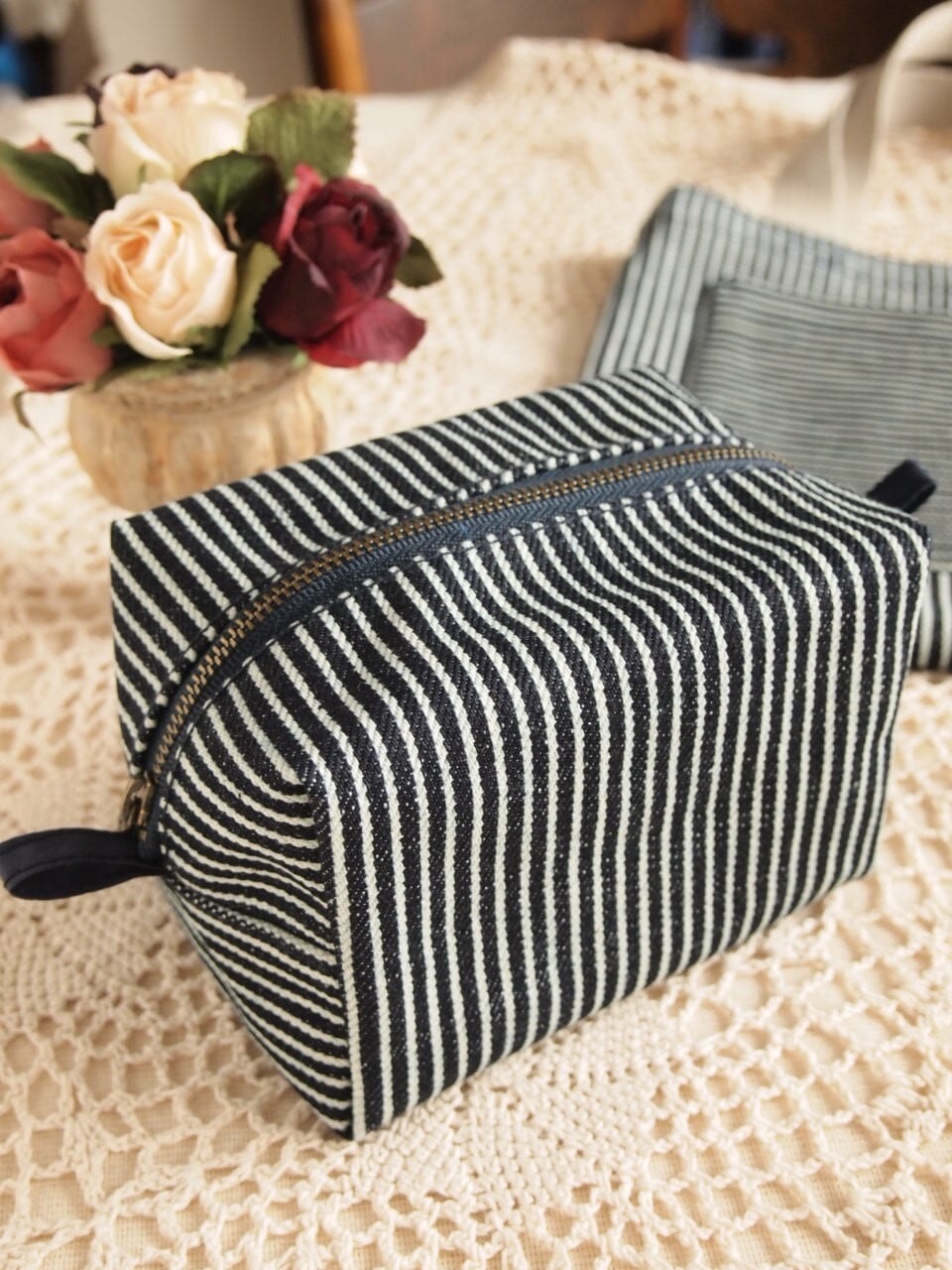 セール!! 40%OFF!! ハンドメイド ポーチ 雑貨屋カンフィ クラフトkeke ヒッコリー ポーチ