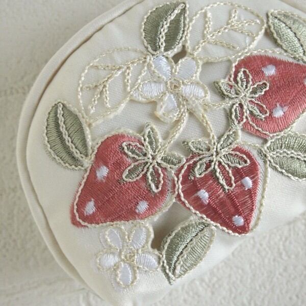 ほんのりとクリーム系のオフホワイトカラー地に、真っ赤なストロベリーの刺繍を施したシリーズです。
