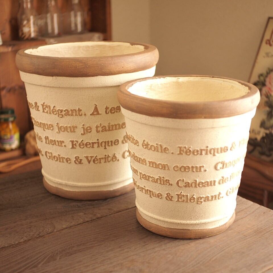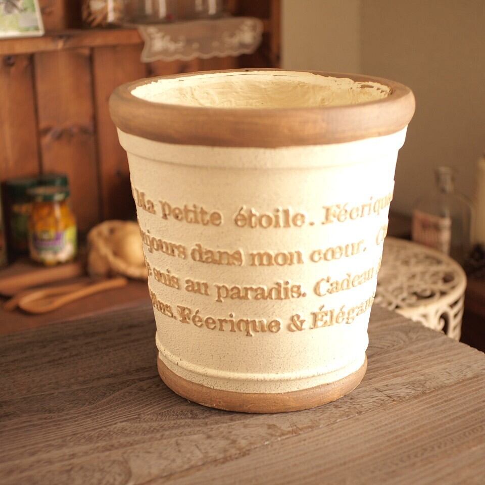 おしゃれなデザインが魅力の、植木鉢 アンティークレターポット S アイボリーです!