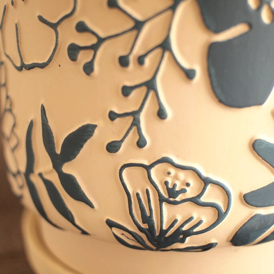美しい浮彫のデザインが、どんなインテリアとも調和し、お部屋を華やかに彩ります。ガーデニングを楽しむ方にぴったりのアイテムです。