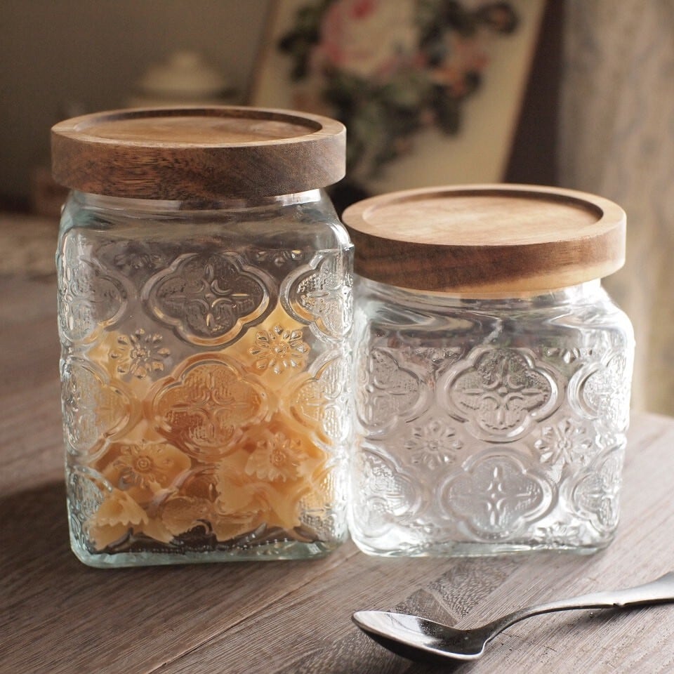 食材保存から小物収納まで使える、レトロでおしゃれなガラスキャニスターです。