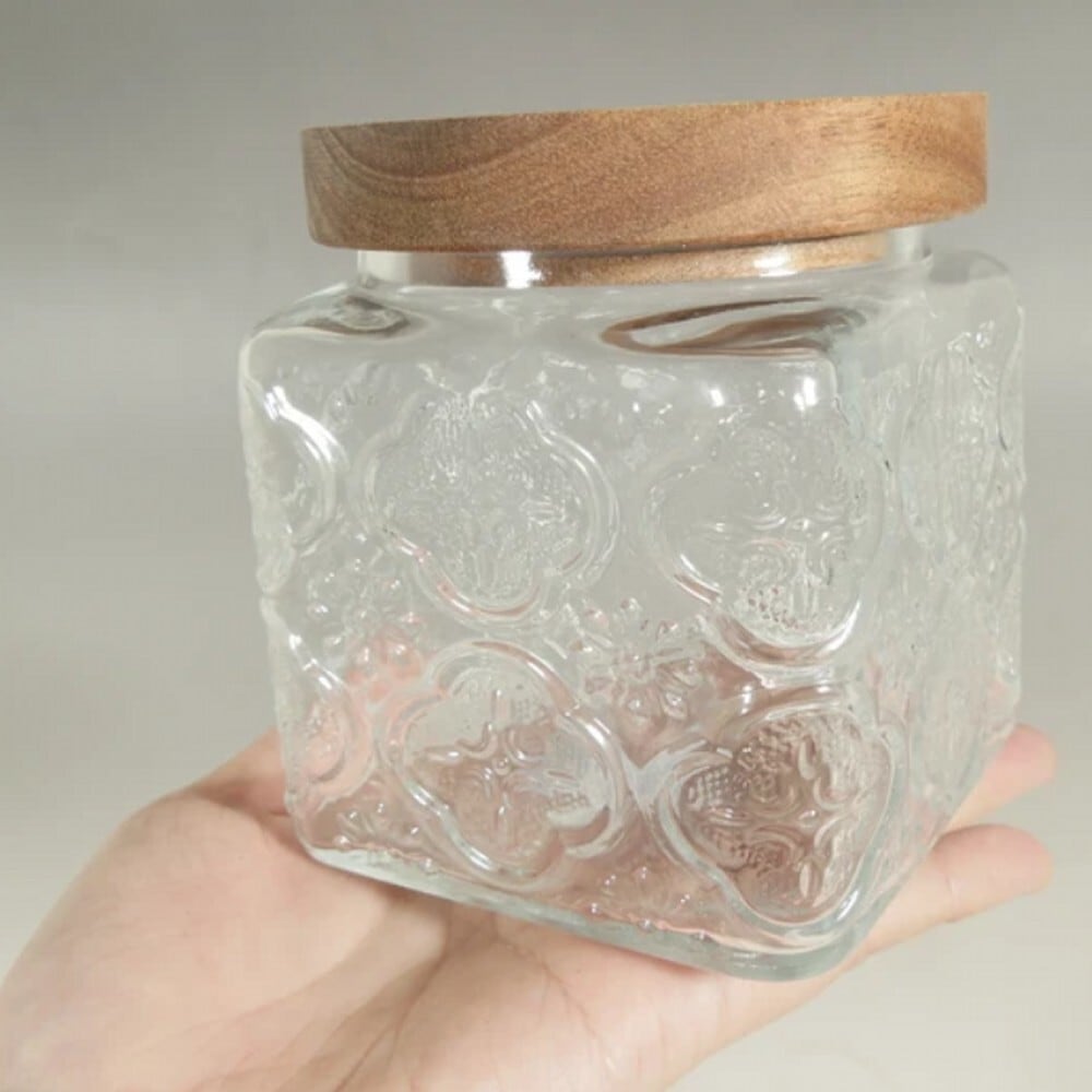 ガラスキャニスター S 木蓋 密閉 保存容器 レトロ ガラス容器 小物入れ