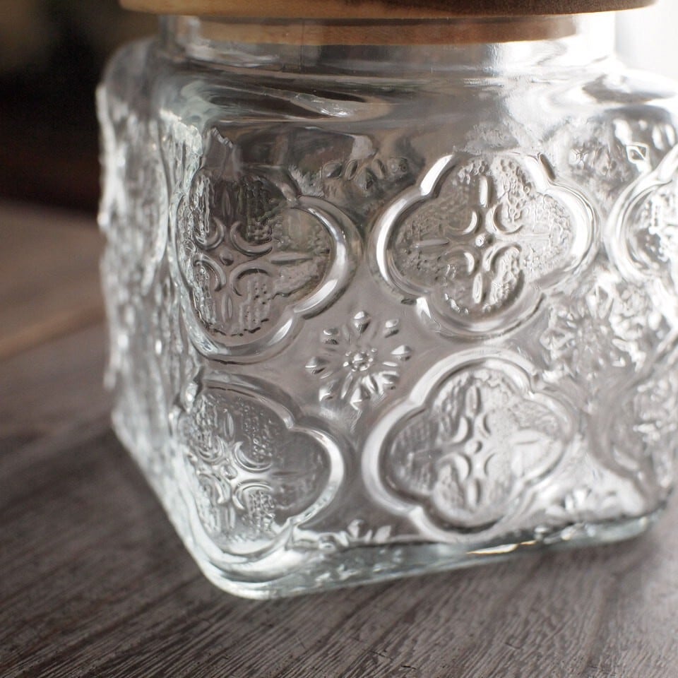 レトロな雰囲気が魅力のガラスキャニスター Sサイズです。