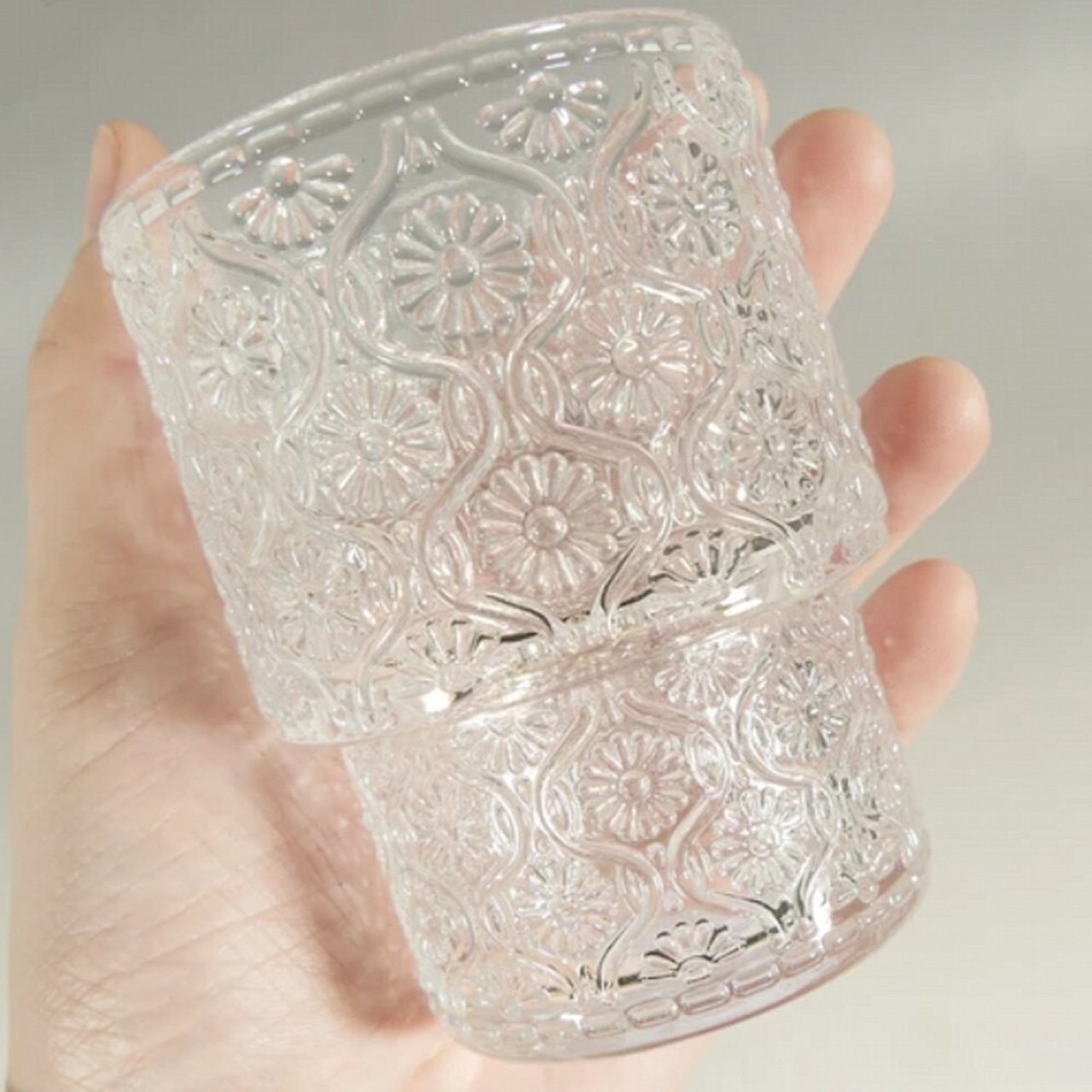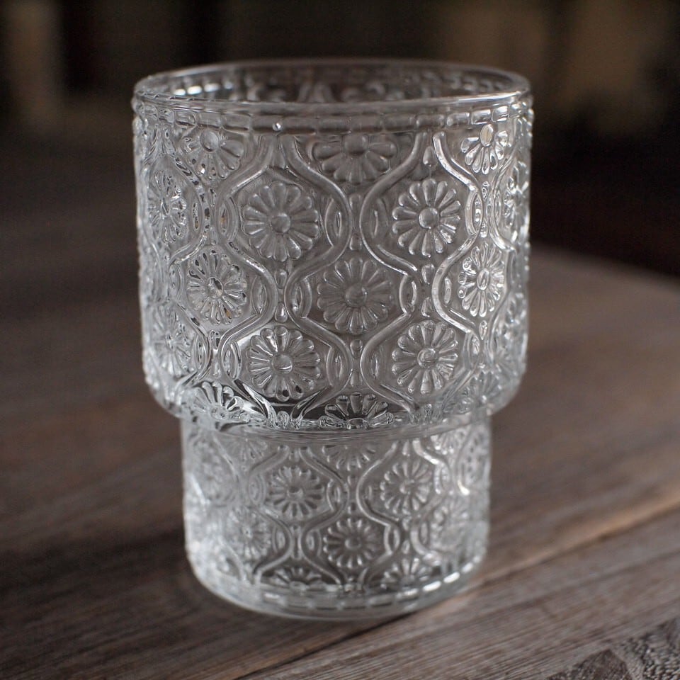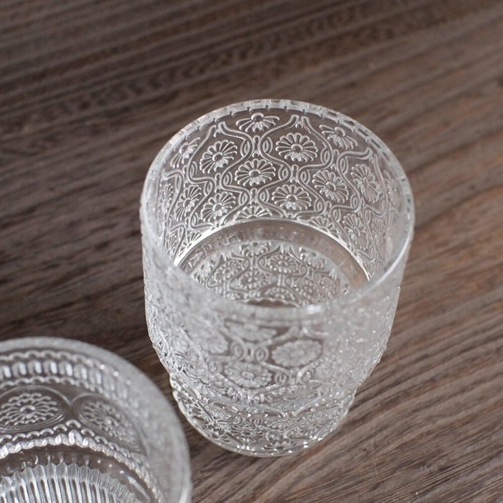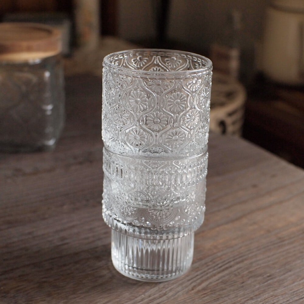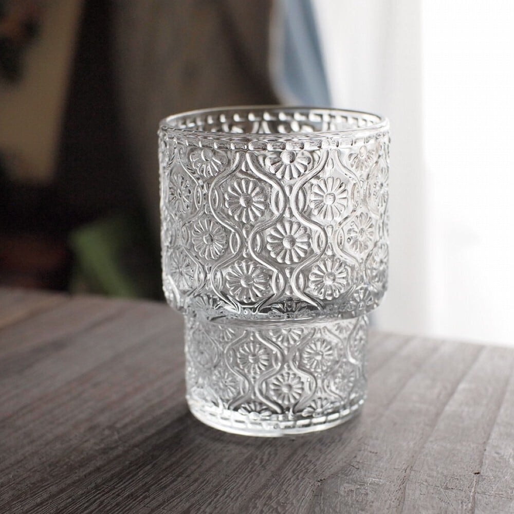 レトロガラス グラス B柄 型押し コップ カフェ風 タンブラー おしゃれ ガラス 食器