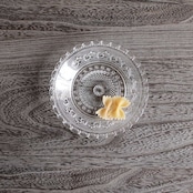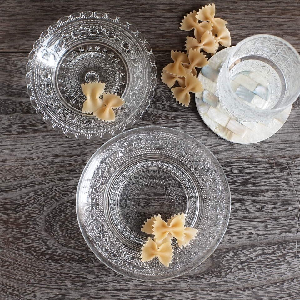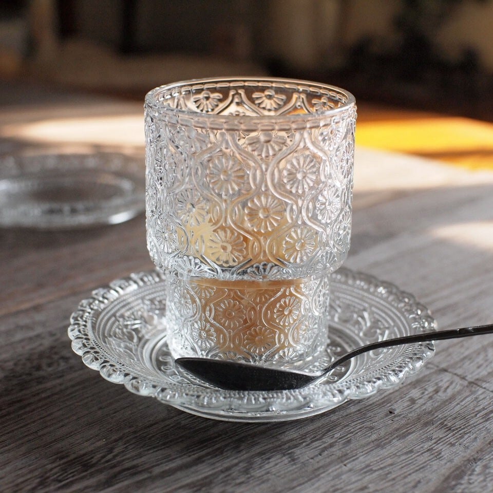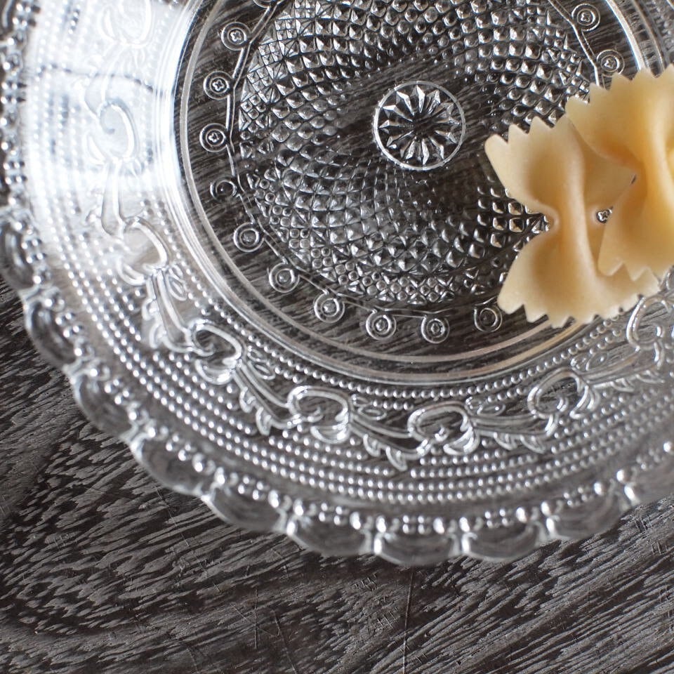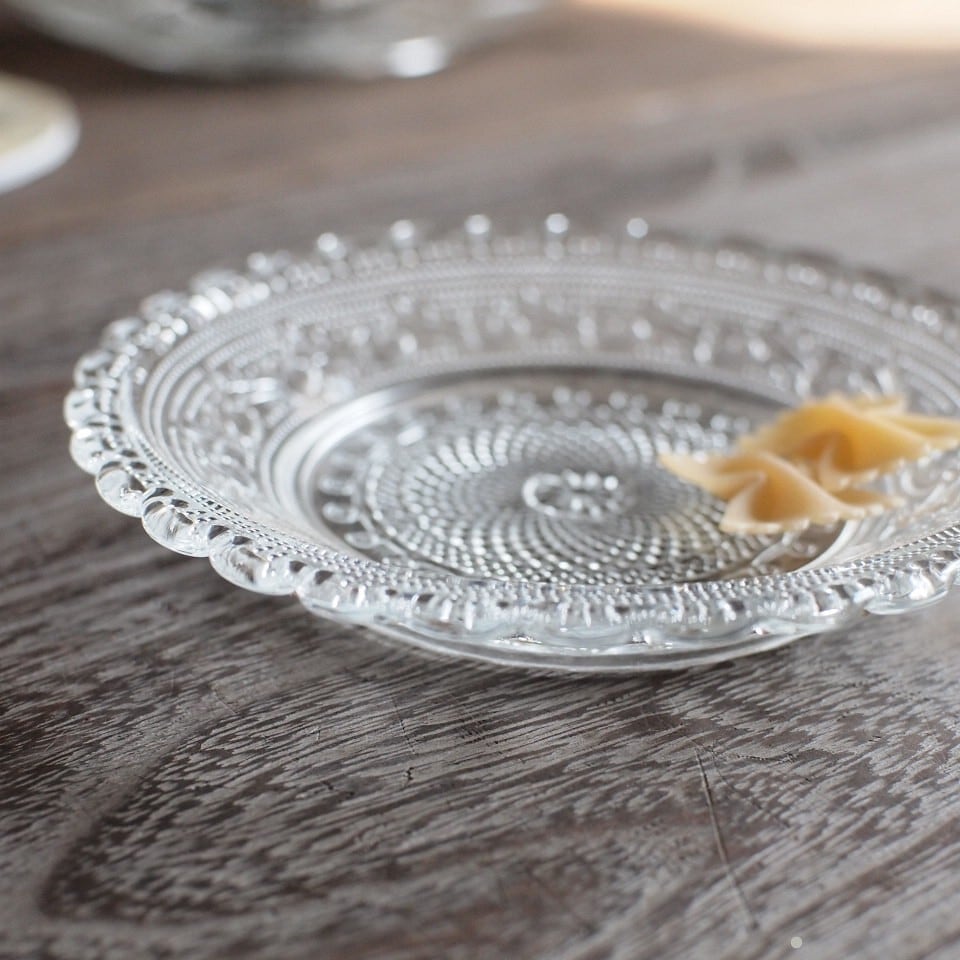 レトロな型押し模様が魅力のガラスプレートSサイズ。