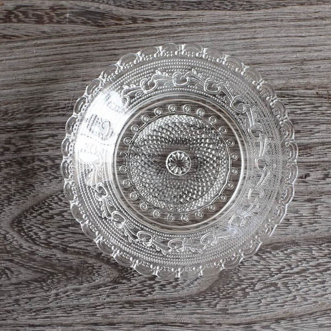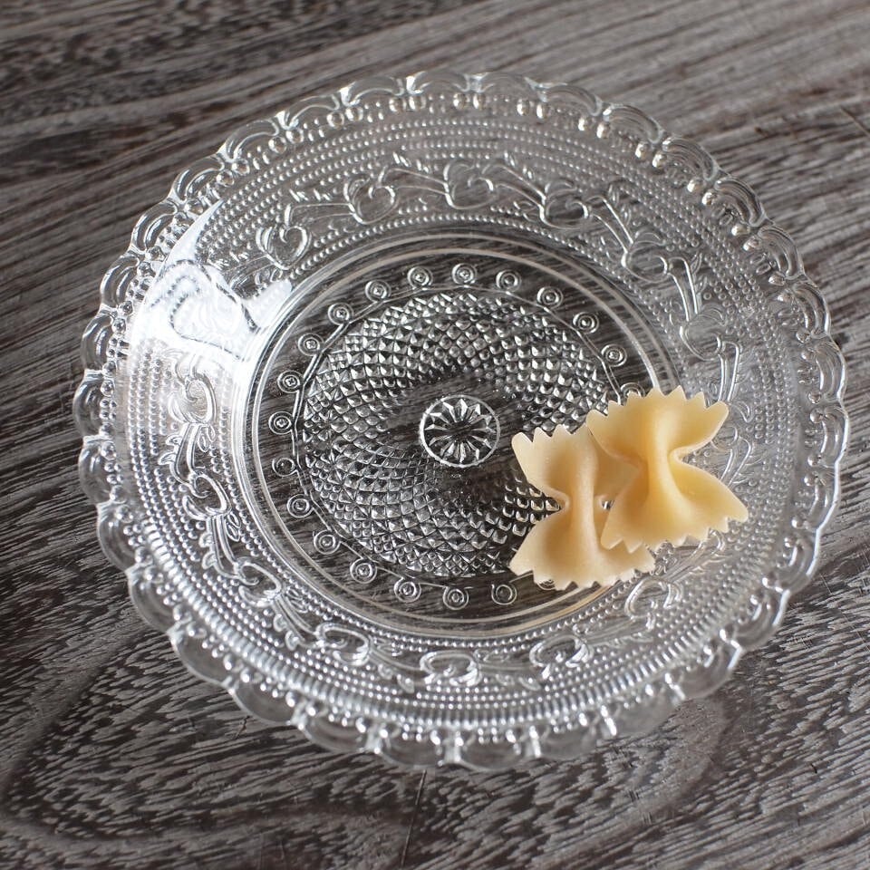 レトロガラス プレート S フリル 型押し ガラス皿 小皿 デザート皿 おしゃれ カフェ風