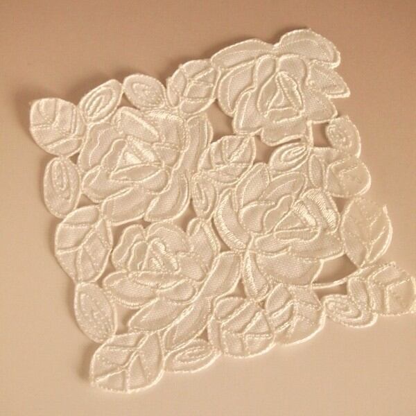 葉っぱとバラをかたどった部位には全面コード刺繍が施され、