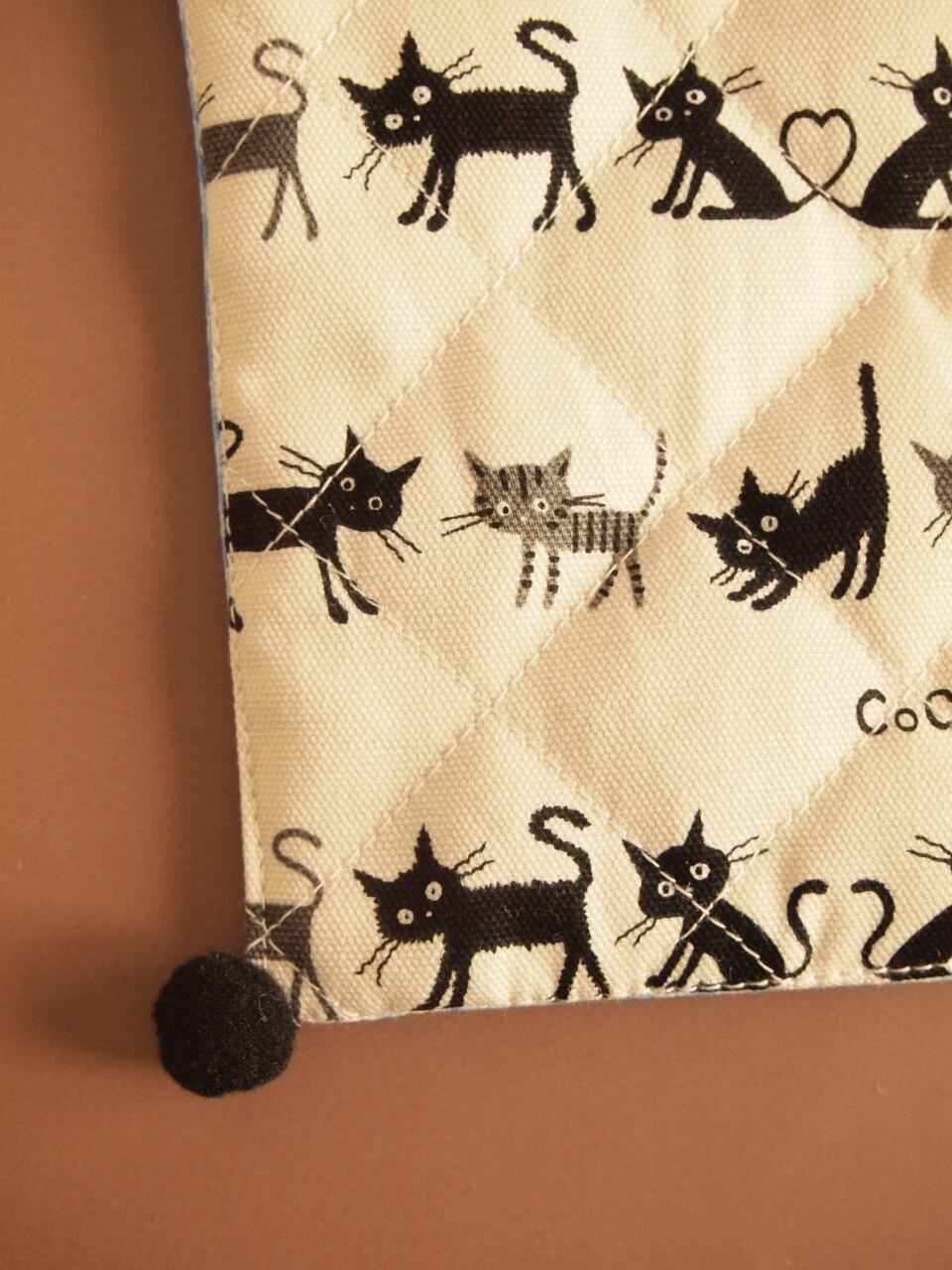キッチン雑貨 ねこ ポンポン付き キルトコースターA ハンドメイド