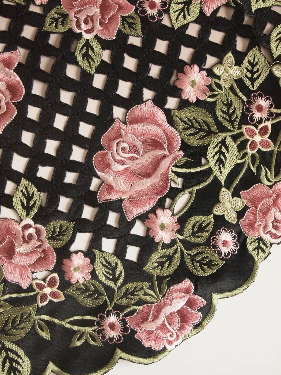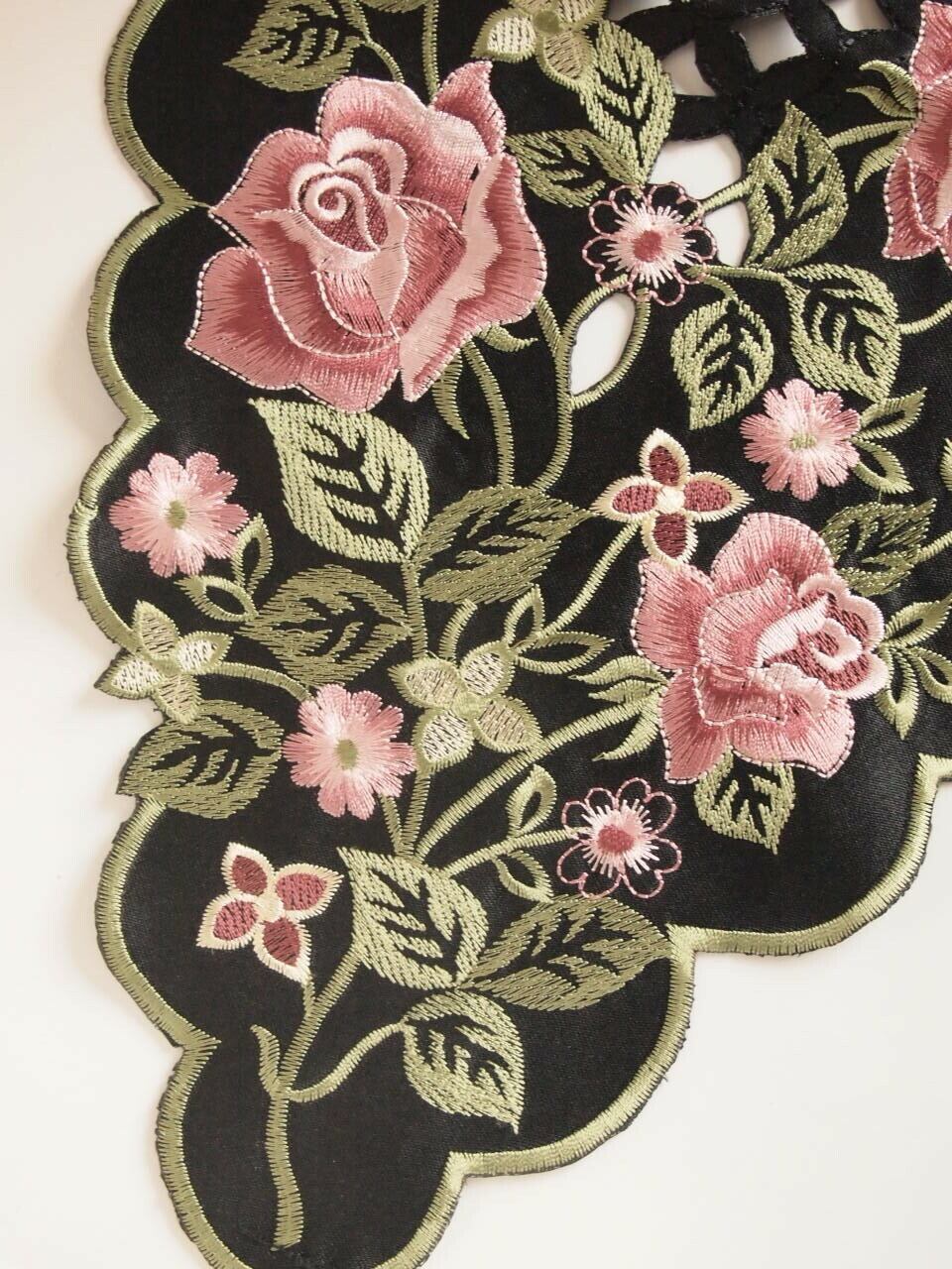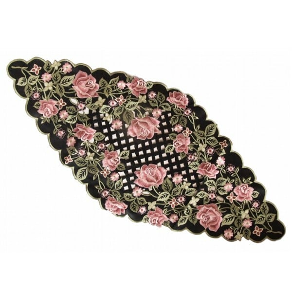 アンティークレース風 高級コード刺繍ドイリー ソルシエールローズ テーブルセンター 35x75cm