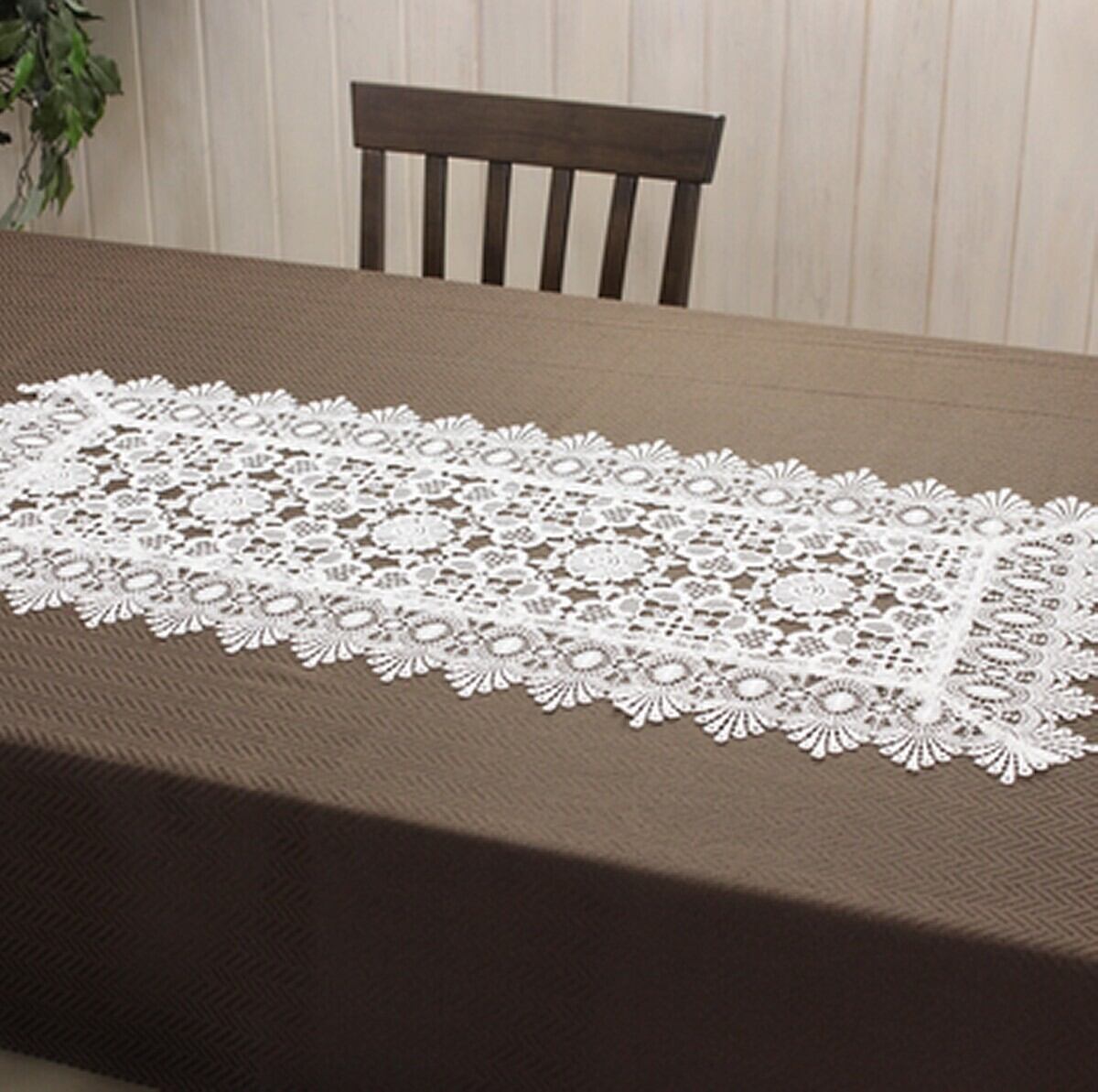 アンティークレース風 ギュピールレース テーブルセンター ピュールホワイト 43x74cm