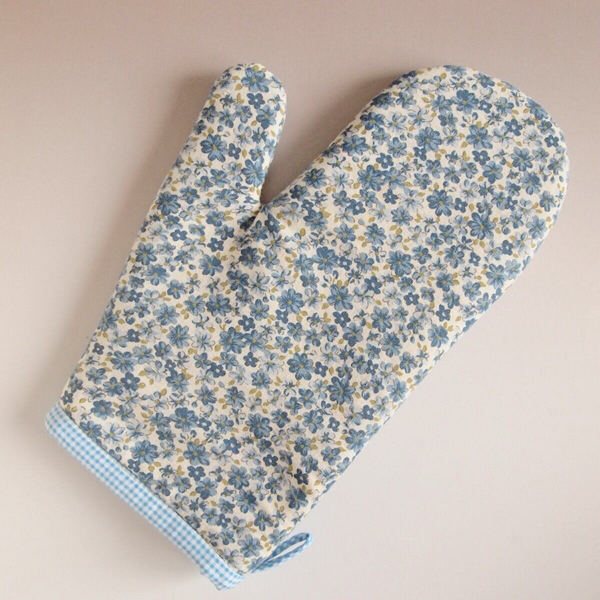 セール!40%OFF! 鍋つかみ ミトン 小花ブルー ハンドメイド 手袋