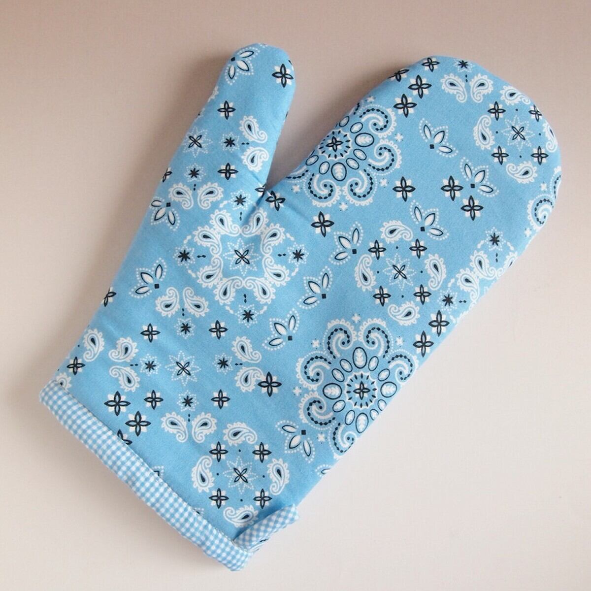 セール!40%OFF! 鍋つかみ ミトン バンダナブルー ハンドメイド 手袋