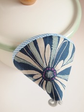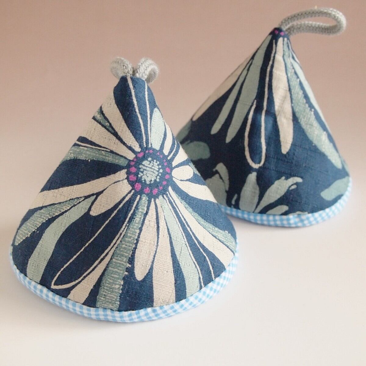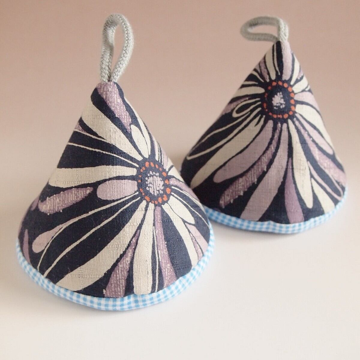 かわいいカラーの綿入り三角鍋つかみです。