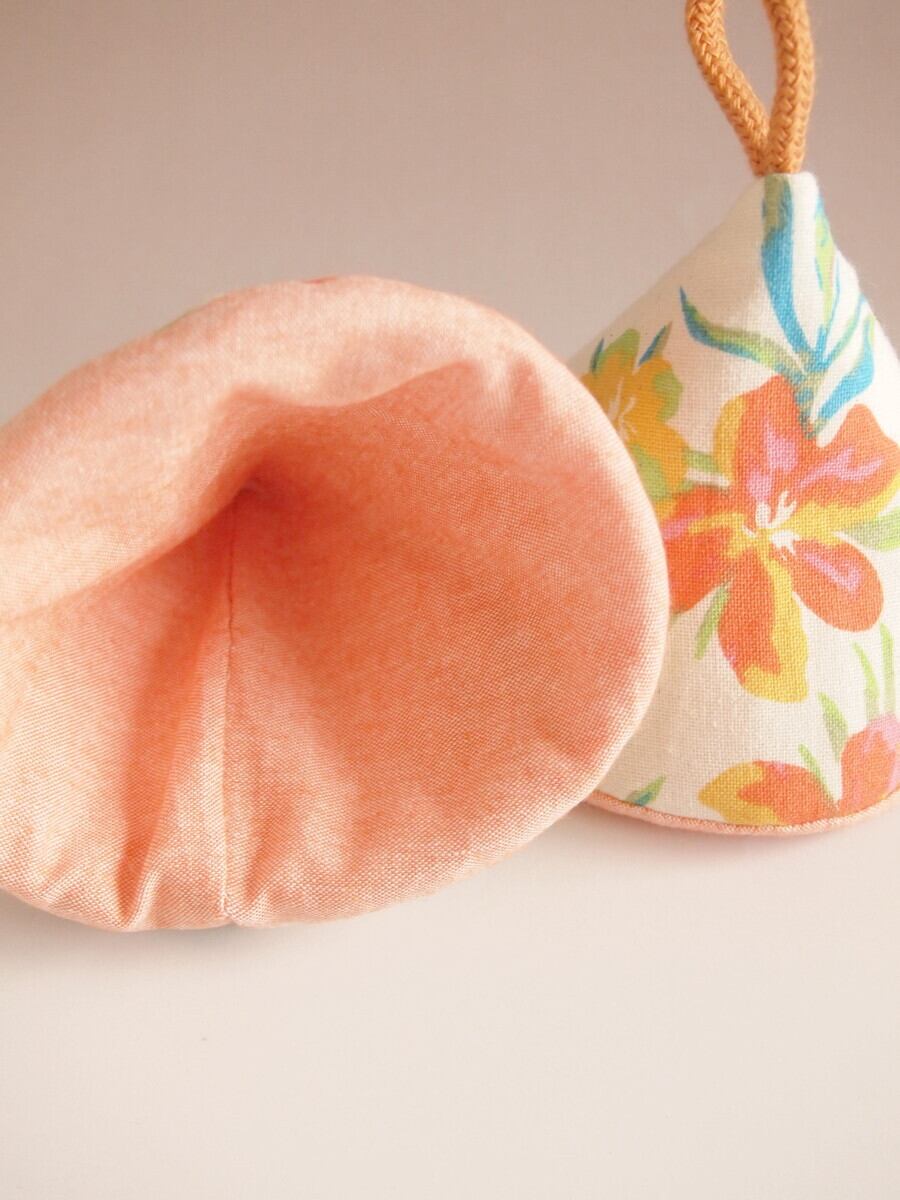 かわいいカラーの綿入り三角鍋つかみです。