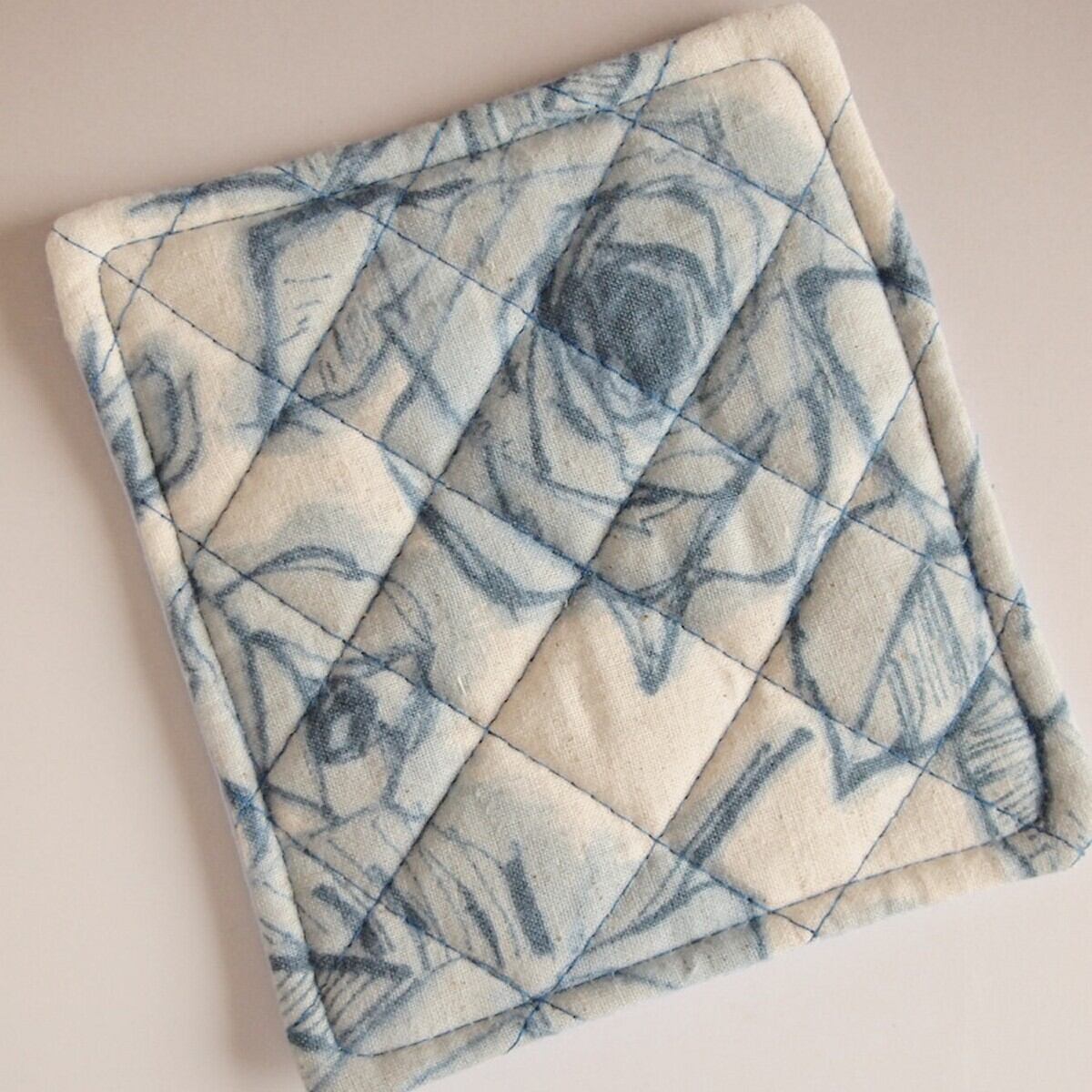 鍋つかみ スクエア ハンドメイド ブルーローズB ポットマット