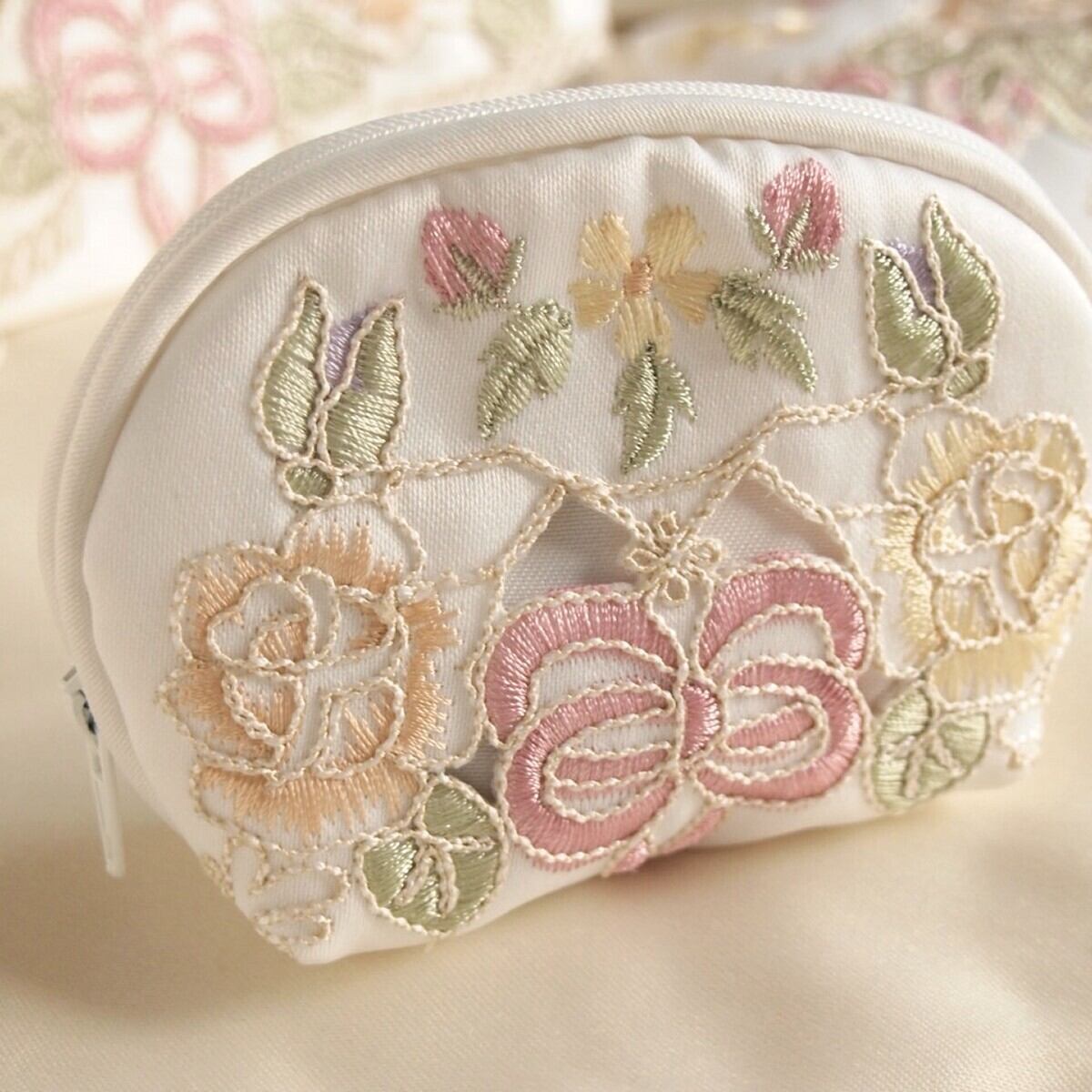 ポーチ おしゃれ レディース 高級コード刺繍コインケース リボン&ローズ