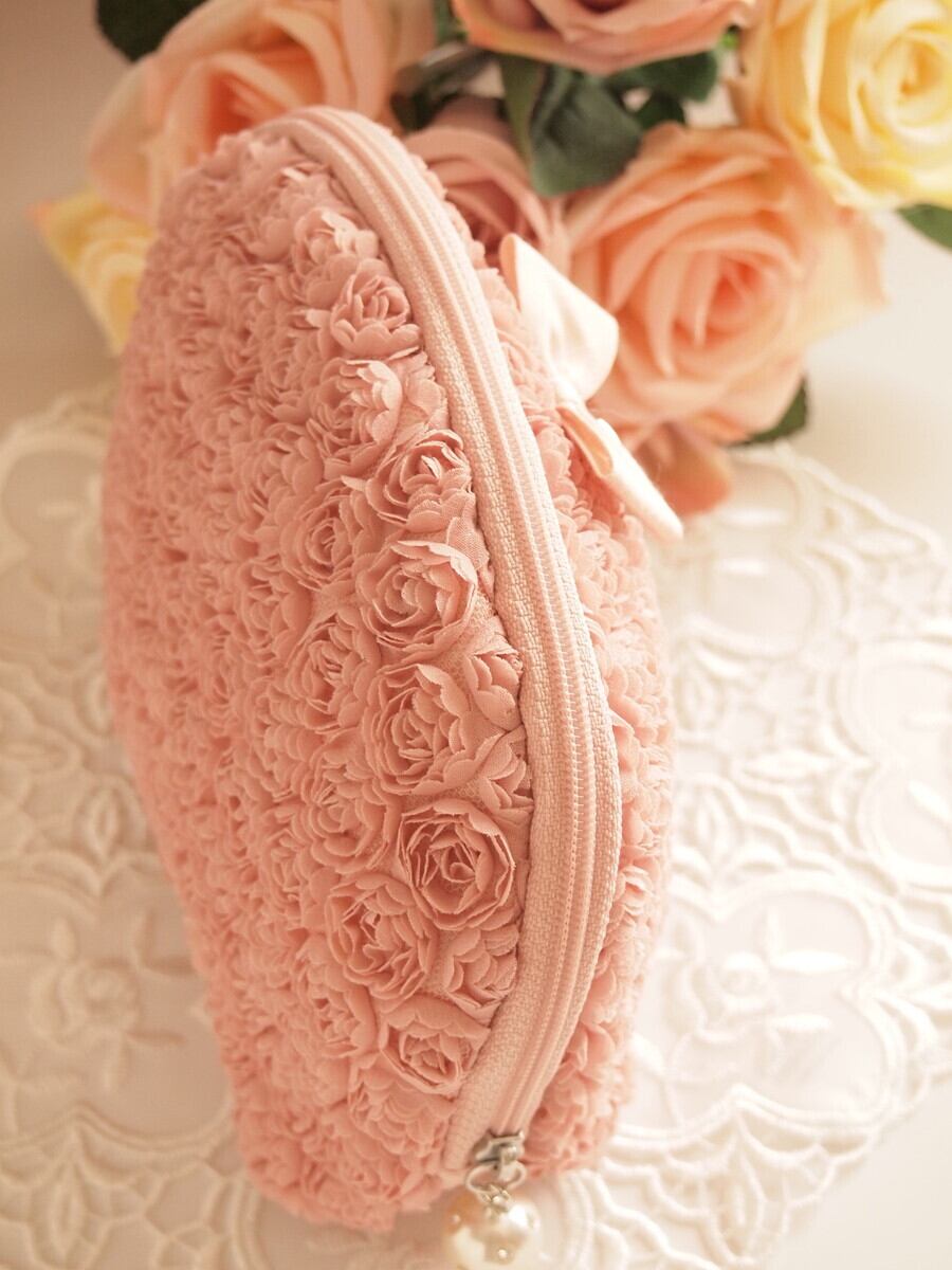 シェルポーチ 化粧ポーチ ミニローズ ピンク おしゃれ レディース アンティ ーク風レース雑貨