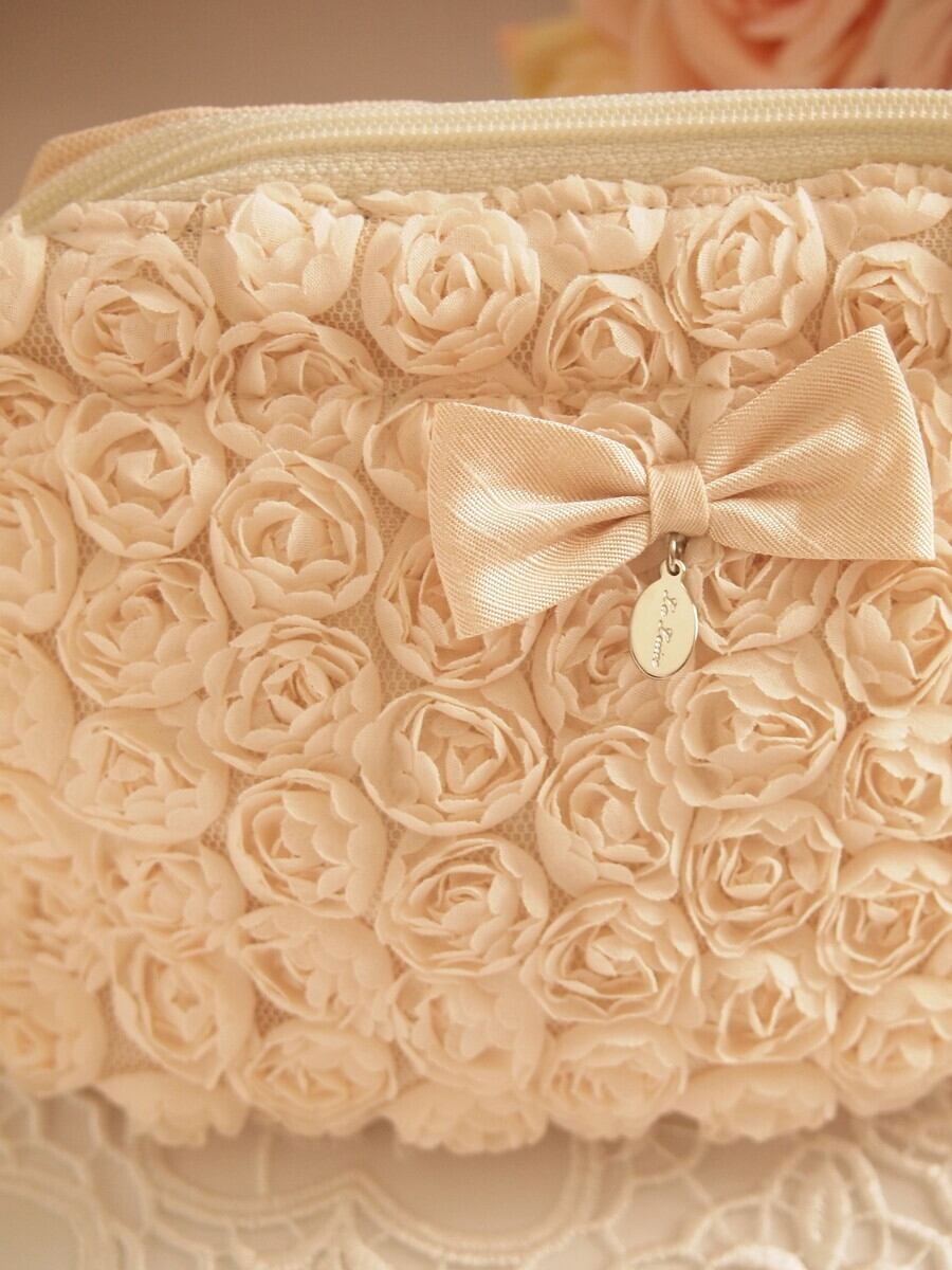 化粧ポーチ 口金入り ミニローズ ベージュ おしゃれ レディース アンティーク風 レース雑貨