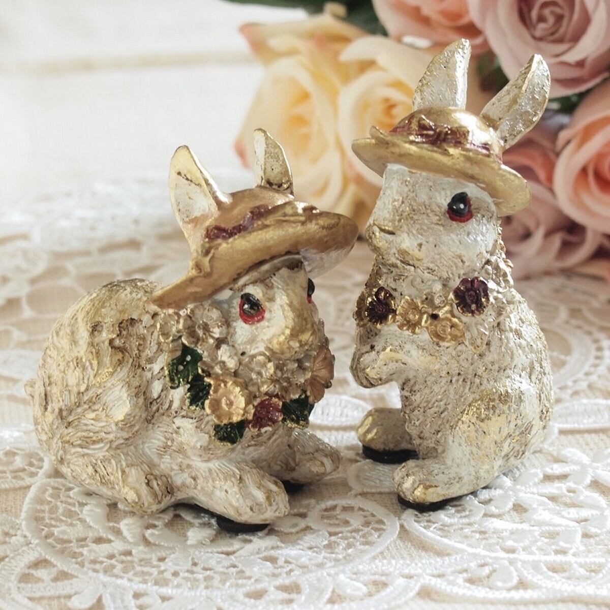 インテリア雑貨 フラワーラビット ペア うさぎ オブジェ アンティーク雑貨 バロック ラビット