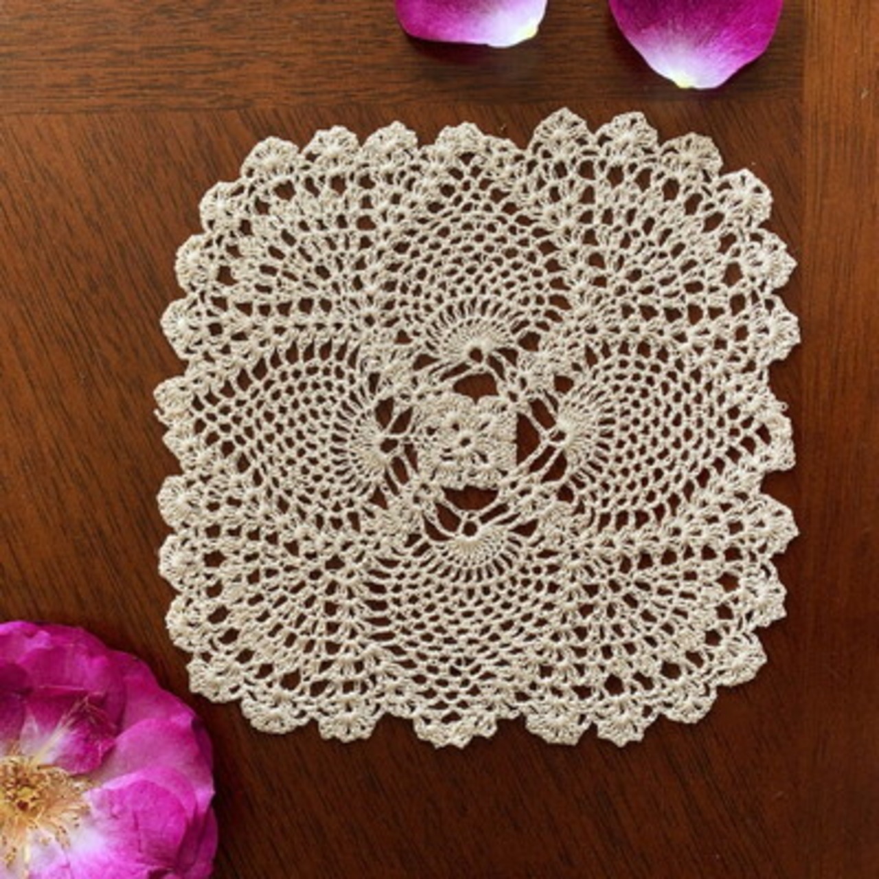 従来のドイリー糸よりも細い糸を使用して、丁寧に編み込みました。