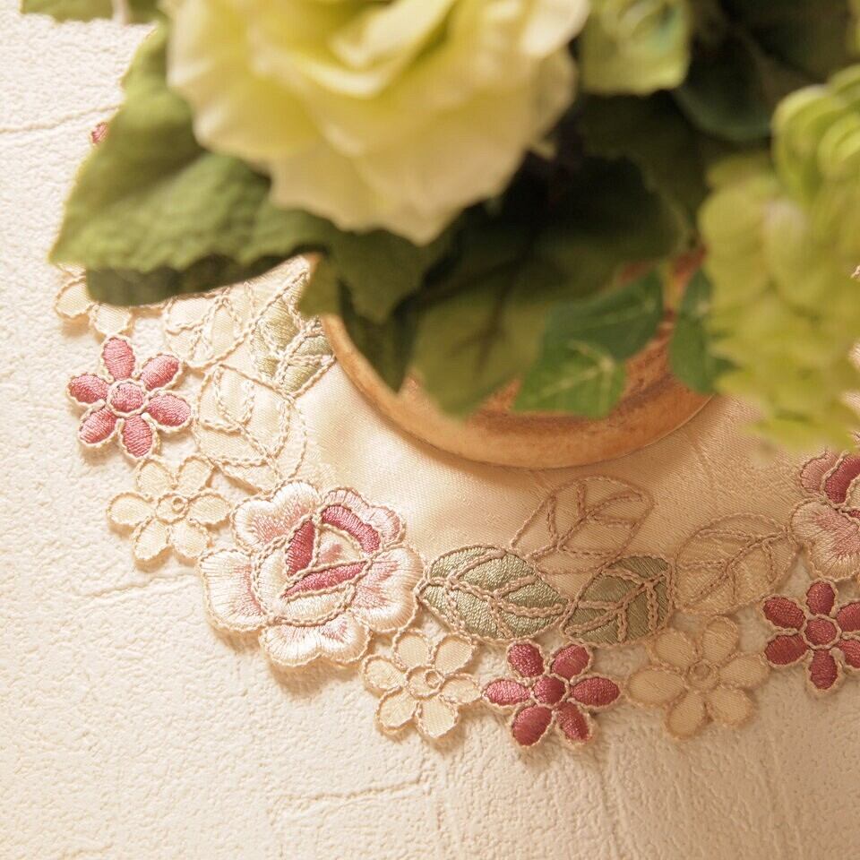 渋めのバラ刺しゅうを施された、上品なドイリー♪