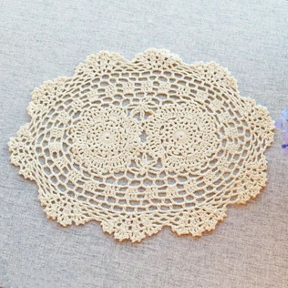 ハンドメイド レース テーブルセンター 手編み コットン ケイティ 24×35 ベージュ アンティーク調
